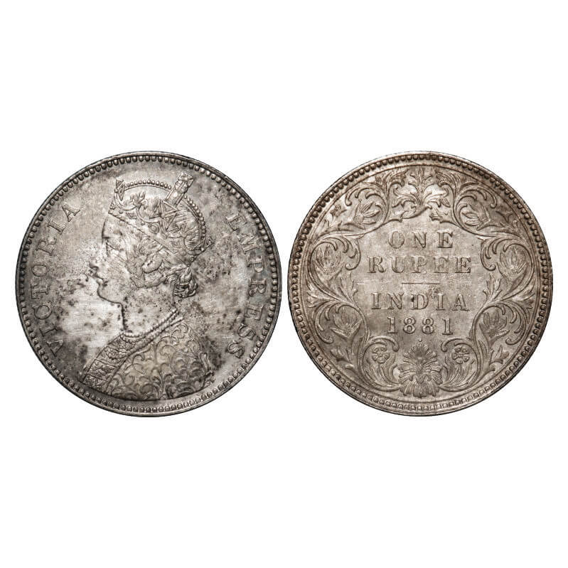 Victoria Empress, Silver, Rupee, 1881, Calcutta Mint, A1/I, 'C' incused, Flat 1. F. Prid 119. GK 47...