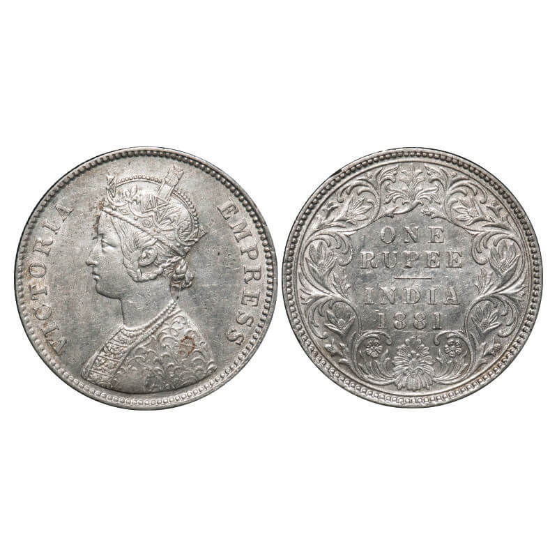 Victoria Empress, Silver, Rupee, 1881, Calcutta Mint, A1/I, 'C' incused, Flat 1. F. Prid 119. GK 471. Extremely Fine. Very Scarce.
