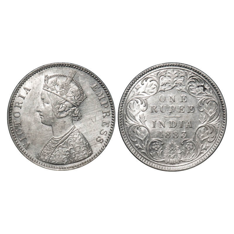 Victoria Empress, Silver, Rupee, 1883, Bombay Mint, A3/I, Dot, Flat 1. F. Prid 162. GK 477. About Uncirculated. Very Scarce.