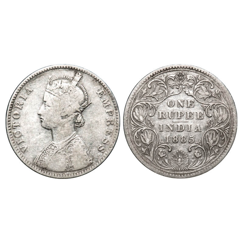 Victoria Empress, Silver, Rupee, 1885, Bombay Mint, A3/II(i), 'B' raised, Top stroke of numeral 5 l...