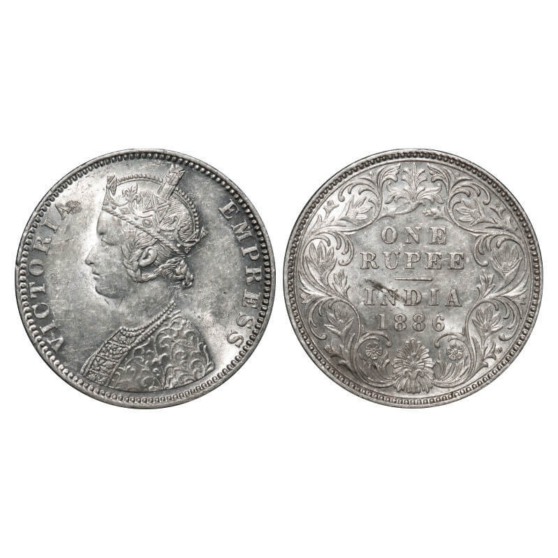 Victoria Empress, Silver, Rupee, 1886, Bombay Mint, C2/I, 'B' incused, Flat 1. F. Prid 171. GK 523. About Uncirculated. Scarce.