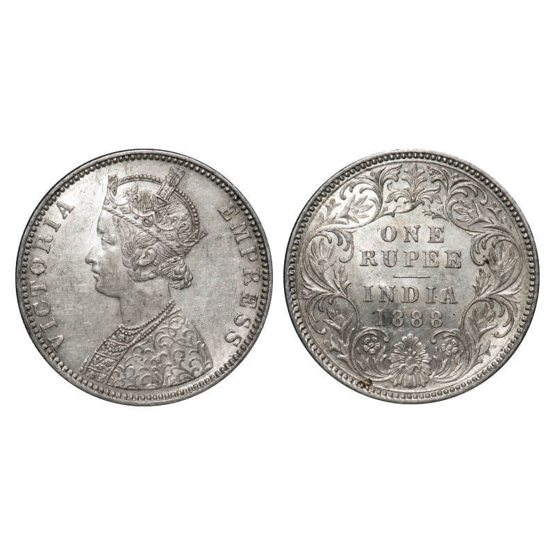 Victoria Empress, Silver, Rupee, 1888, Calcutta Mint, C3/I(i), 'C' incused, Flat 1. F. Prid 129. GK...