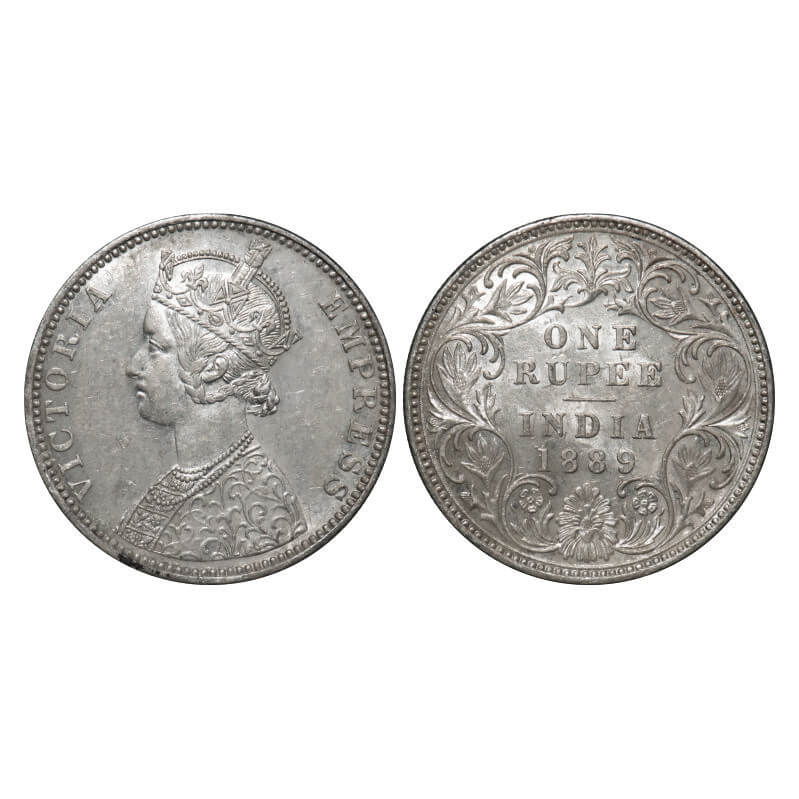 Victoria Empress, Silver, Rupee, 1889, Bombay Mint, C2/I, 'B' incused, Flat 1. F. Prid 177. GK 564....