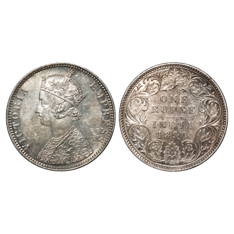 | Victoria Empress, Silver, Rupee, 1890, Bombay Mint, C2/I, 'B' incused, Flat 1. F. Prid 178. GK 566. Uncirculated, Rainbow Toned Rev. Scarce. |
