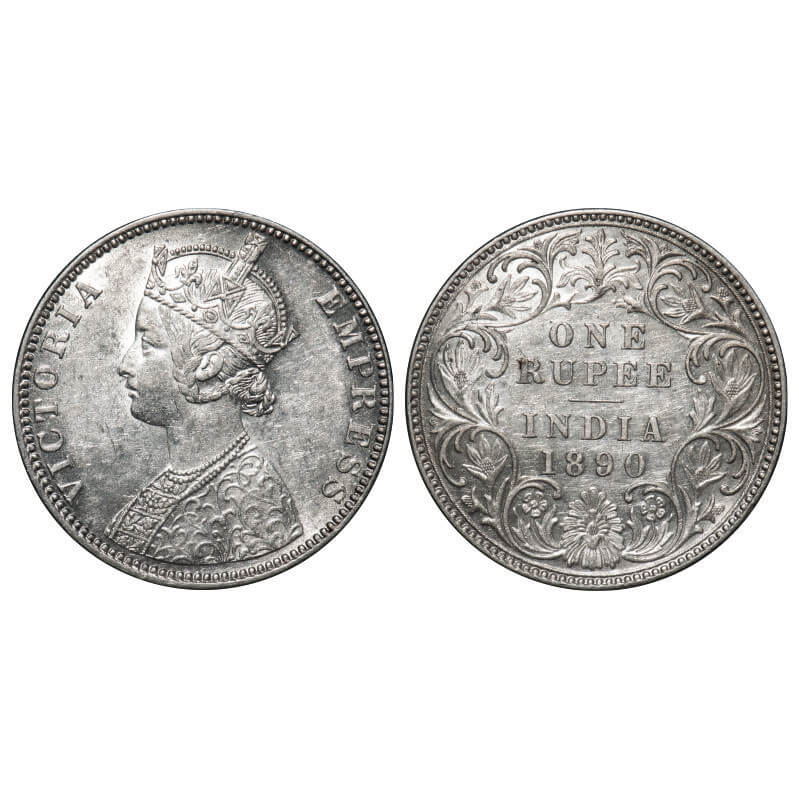 Victoria Empress, Silver, Rupee, 1890, Bombay Mint, C2/I, 'B' incused, Flat 1. F. Prid 178. GK 566. Uncirculated. Scarce.