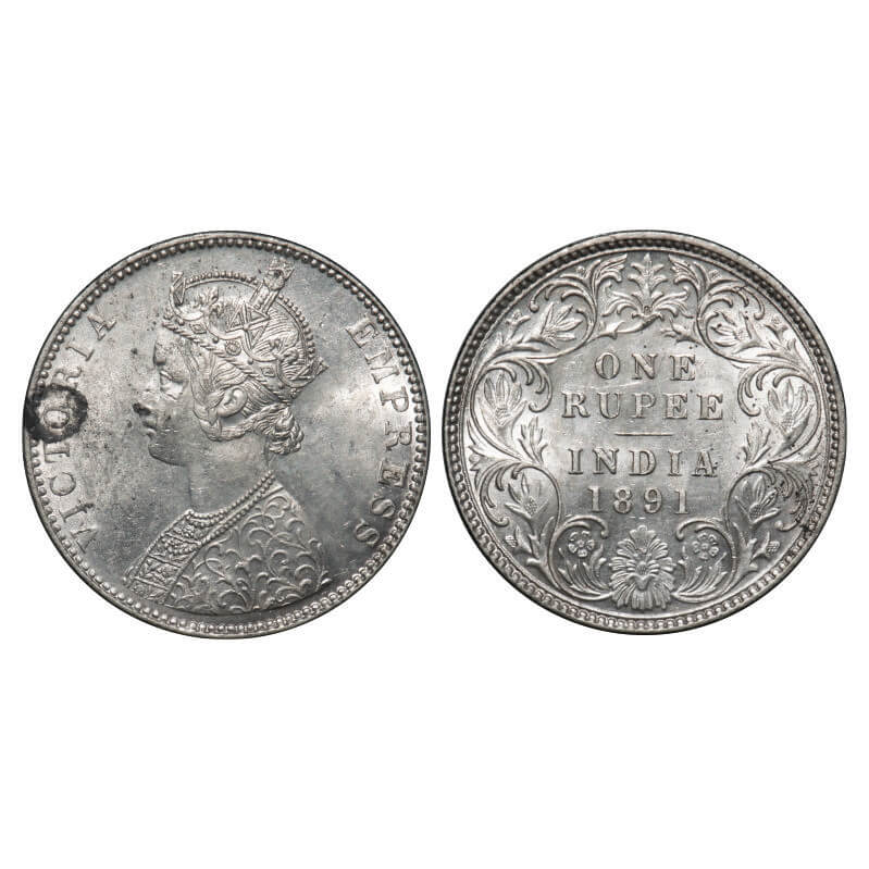 | Victoria Empress, Silver, Rupee, 1891, Bombay Mint, C2/I, 'B' incused, Flat 1. F. Prid 179. GK 569. Uncirculated, Details. Scarce. |