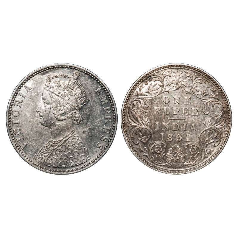 | Victoria Empress, Silver, Rupee, 1891, Bombay Mint, C2/I, 'B' incused, Flat 1. F. Prid 179. GK 569. Almost Uncirculated, Toned. Scarce. |