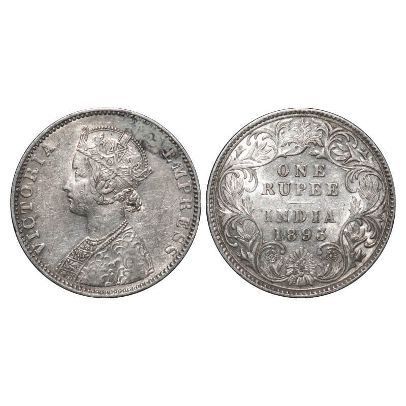 | Victoria Empress, Silver, Rupee, 1893, Bombay Mint, C2/I(ii), 'B' incused, Flat 1. F. Prid 182. GK 579. Extremely Fine+, Details. Scarce. |