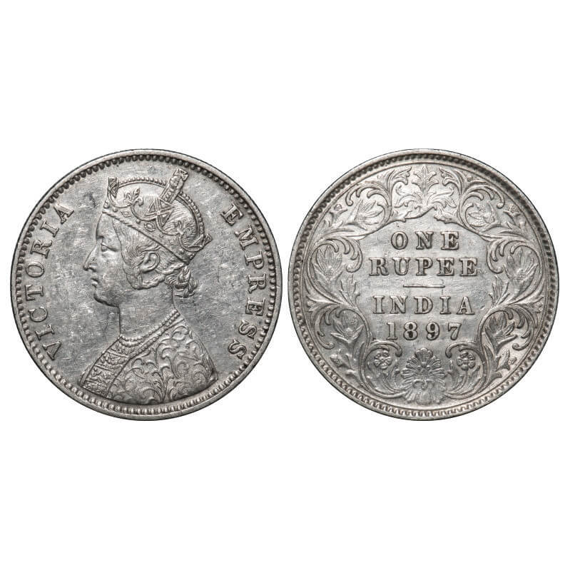 Victoria Empress, Silver, Rupee, 1897, Bombay Mint, C2/I, 'B' incused, Flat 1. F. Prid 183. GK 581....