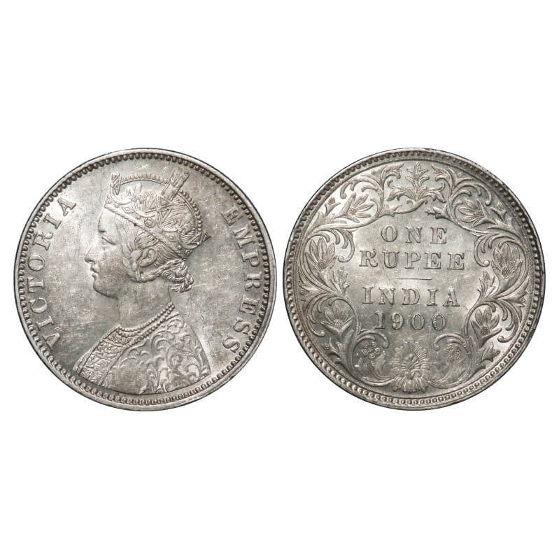 Victoria Empress, Silver, Rupee, 1900, Bombay Mint, A3(i)/I(ii), 'B' incused, Flat 1. F. Prid 186. GK 589. About Uncirculated. Very Scarce.