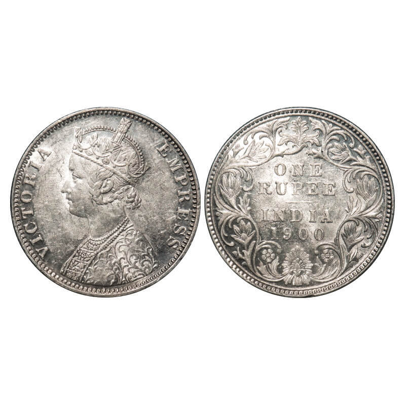 Victoria Empress, Silver, Rupee, 1900, Bombay Mint, A3(i)/I(ii), 'B' incused, Flat 1. F. Prid 186. GK 589. Uncirculated. Very Scarce.