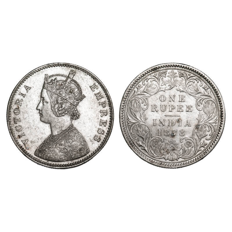 Victoria Empress, Silver, Rupee, 1878, Calcutta Mint, A1/I, No mint mark. F. Prid 116. GK 455. Extremely Fine+. Scarce.