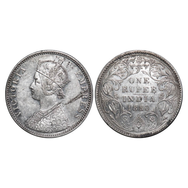Victoria Empress, Silver, Rupee, 1880 (2 coins), 1) Bombay Mint, A3/II(iv), Dot, 2) Calcutta Mint, ...