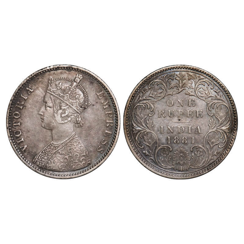 Victoria Empress, Silver, 1881 (2 coins), Calcutta Mint, 1) Rupee, A1/I, 'C' incused, 2) 2 Annas, B...
