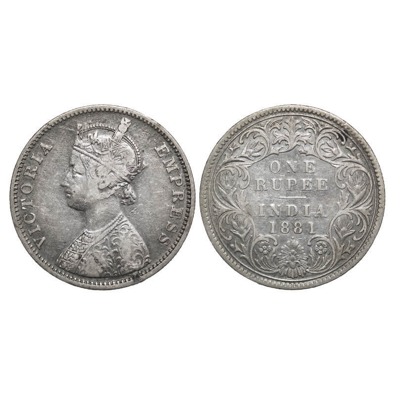 Victoria Empress, Silver, 1881 (2 coins), Calcutta Mint, 1) Rupee, A1/I, 'C' incused, 2) 2 Annas, B...