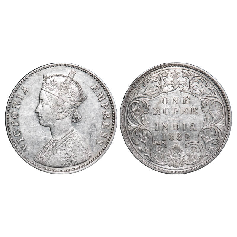 Victoria Empress, Silver, Rupee, 1882, Bombay Mint, A3/I, Dot. F. Prid 160. GK 474. Extremely Fine+. Scarce.