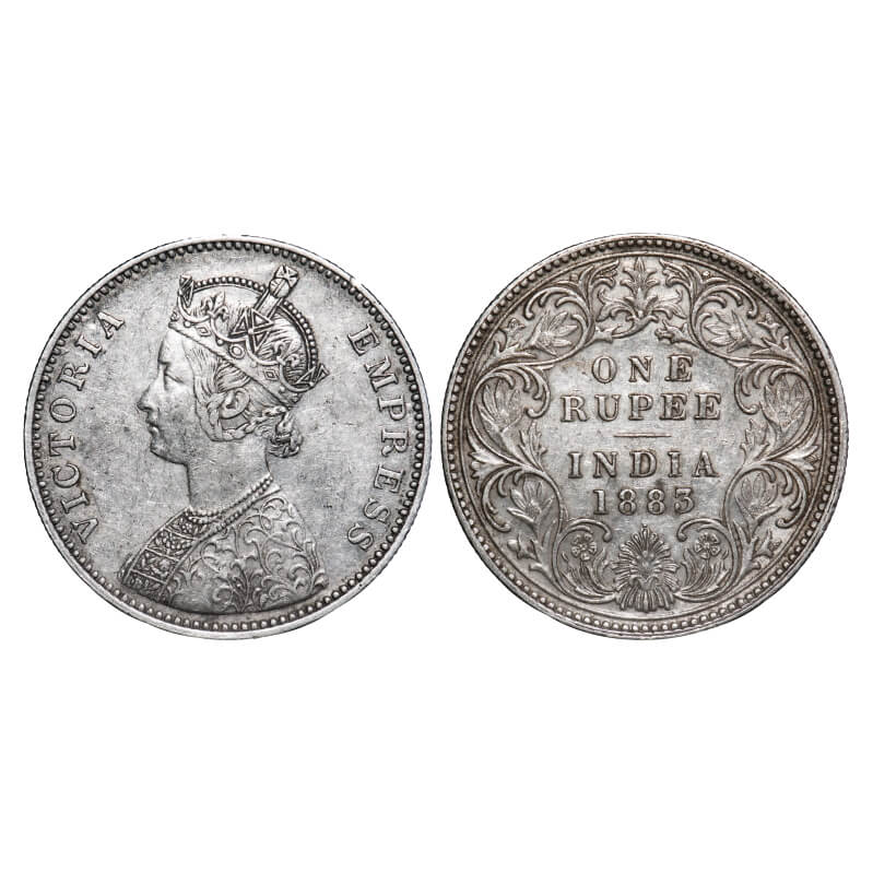 Victoria Empress, Silver, Rupee, 1883, Bombay Mint, A3/I, 'B' raised and dot, Dual mint marks. F. Prid 163. GK 480. Very Fine+. Very Scarce.