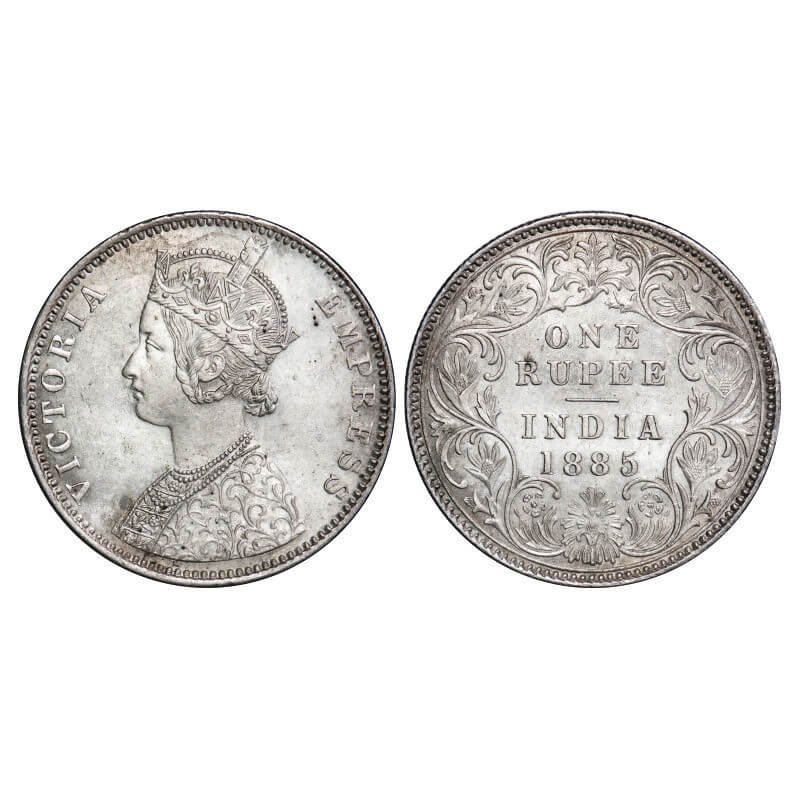 Victoria Empress, Silver, Rupee, 1885, Bombay Mint, C2/I, 'B' incused. F. Prid 170. GK 508. About Uncirculated. Very Scarce.