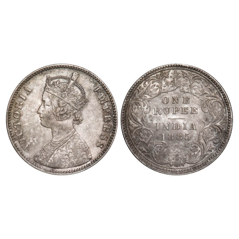Victoria Empress, Silver, Rupee, 1885, Calcutta Mint, A1/I, 'C' incused, Top stroke of numeral 5 long. F. Prid 124. GK 519. Extremely Fine+. Very Scarce.
