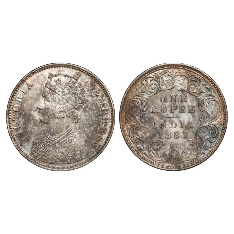 Victoria Empress, Silver, Rupee, 1887, Bombay Mint, C2/I(ii), 'B' raised. F. Prid 172. GK 533. Uncirculated, Toned. Very Scarce.