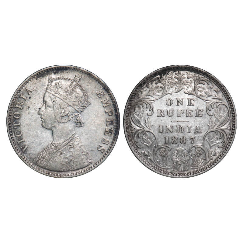 Victoria Empress, Silver Rupee, 1887, Bombay Mint, A3/I9i), 'B' incused, B incused inverted. F. Prid Unlisted. GK 537. Very Fine+. Very Scarce.
