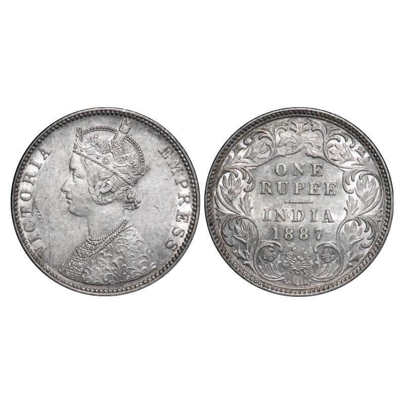 Victoria Empress, Silver Rupee, 1887, Bombay Mint, A3/I9i), 'B' incused, B incused inverted. F. Pr...