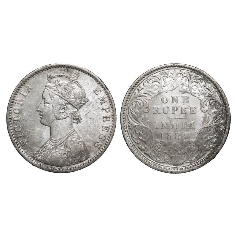 Victoria Empress, Silver, Rupee, 1887, Calcutta Mint, C3/I(i), 'C' incused, Thin numeral 7. F. Prid 128. GK 550. Very Fine. Scarce.
