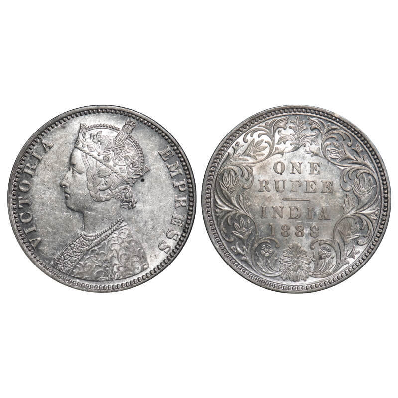 Victoria Empress, Silver, Rupee, 1888, Bombay Mint, C2/I, 'B' raised. F. Prid 174. GK 551. Uncirculated. Very Scarce.