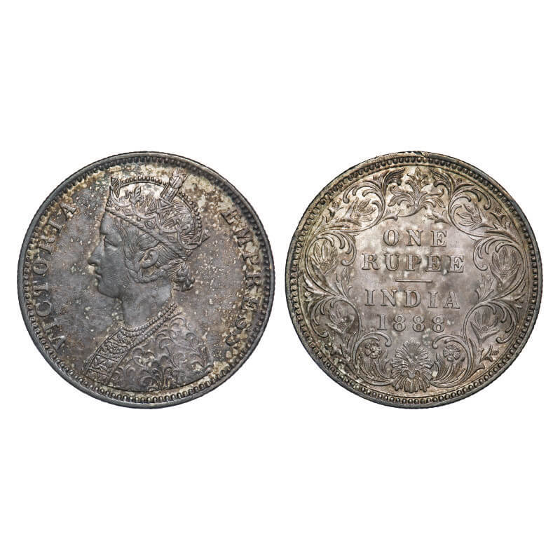 | Victoria Empress, Silver, Rupee, 1888, Bombay Mint, C2/I, ‘B’ raised, Flat 1. F. Prid 174. GK 551. About Uncirculated, Toned. Rare. |