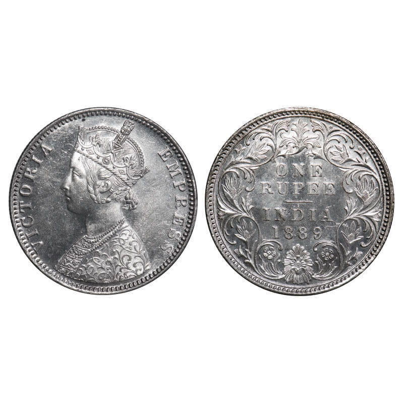 Victoria Empress, Silver, Rupee, 1889, Bombay Mint, C2/I, 'B' incused. F. Prid 177. GK 564. Mint State with original mint luster. Rare.