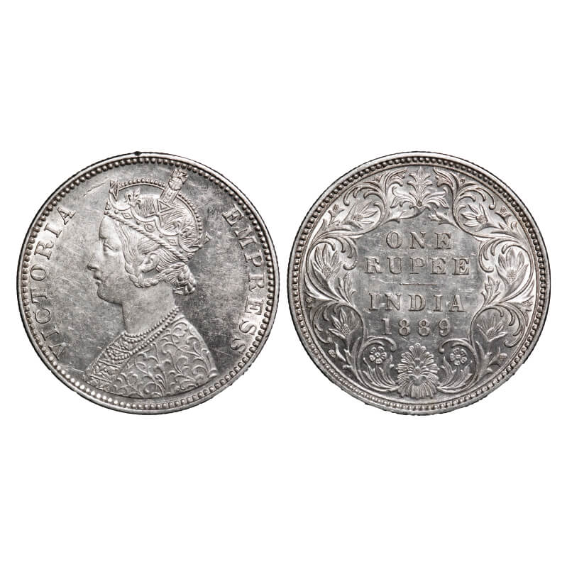Victoria Empress, Silver, Rupee, 1889, Bombay Mint, C2/I, 'B' incused. F. Prid 177. GK 564. About Uncirculated. Very Scarce.