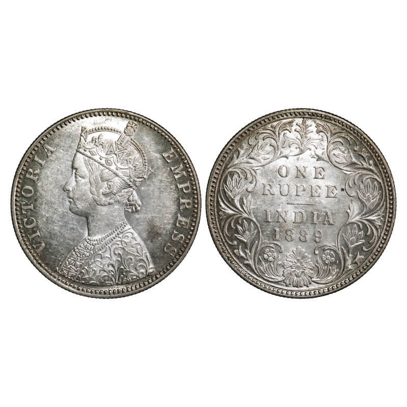 Victoria Empress, Silver, Rupee, 1889, Bombay Mint, C2/I, 'B' incused. F. Prid 177. GK 564. About Uncirculated. Scarce.