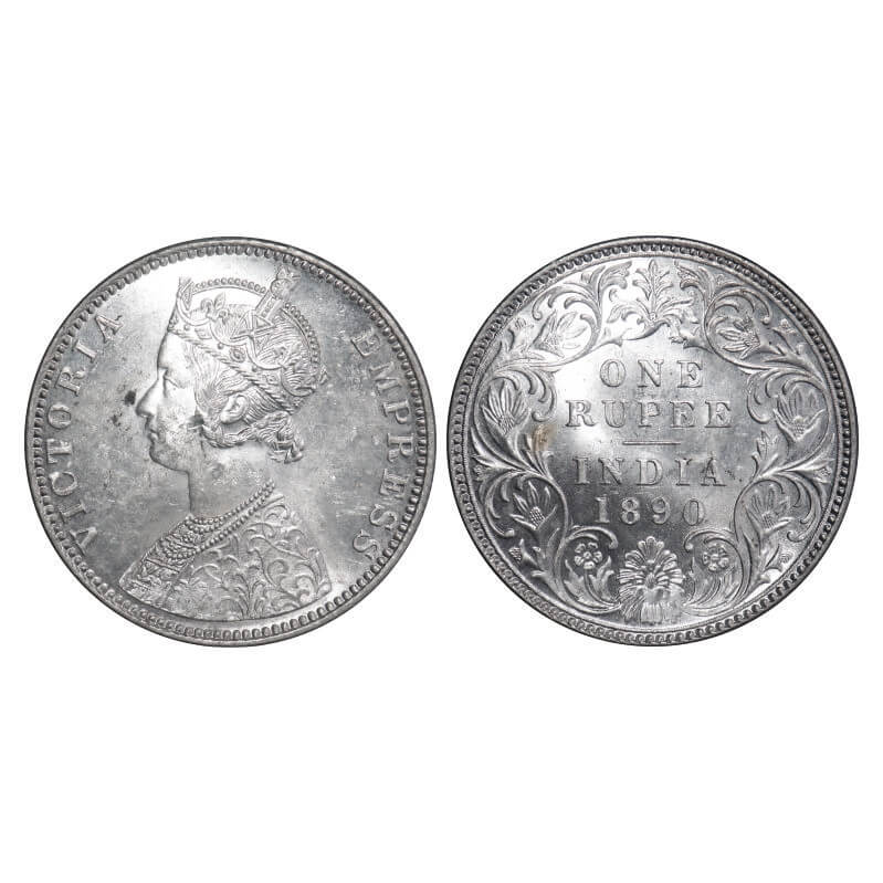 Victoria Empress, Silver, Rupee, 1890, Bombay Mint, C2/I, 'B' incused. F. Prid 178. GK 566. Brilliant Uncirculated. Rare.