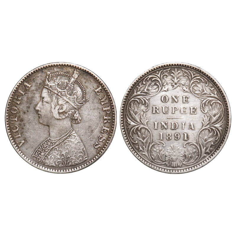 Victoria Empress, Silver, Rupee, 1891, Bombay Mint, C2/I, ‘B’ incused, Traces of numeral 0 seen behind last numeral 1. F. Prid Unlisted. GK 568. Extremley Fine. Rare.