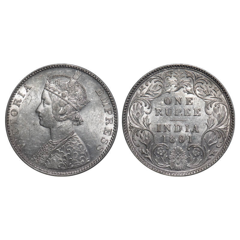 Victoria Empress, Silver, Rupee, 1891, Bombay Mint, C2/I, 'B' incused. F. Prid 179. GK 569. Almost Uncirculated. Very Scarce.