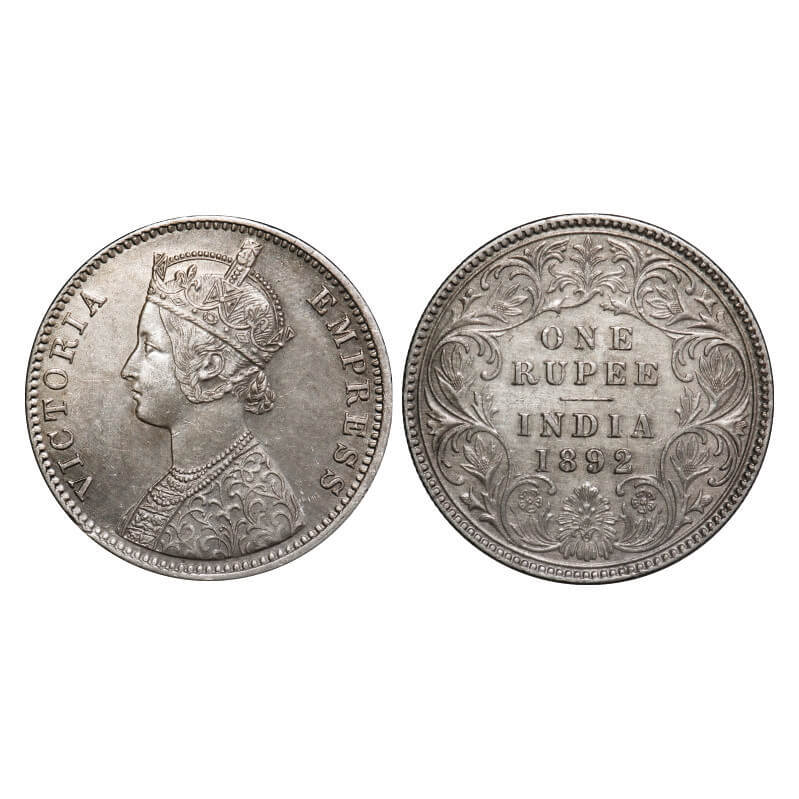 Victoria Empress, Silver, Rupee, 1892, Calcutta Mint, C3/I, 'C' incused, Ghost on Rev. F. Prid 133. GK 576. Extremely Fine+. Very Scarce.