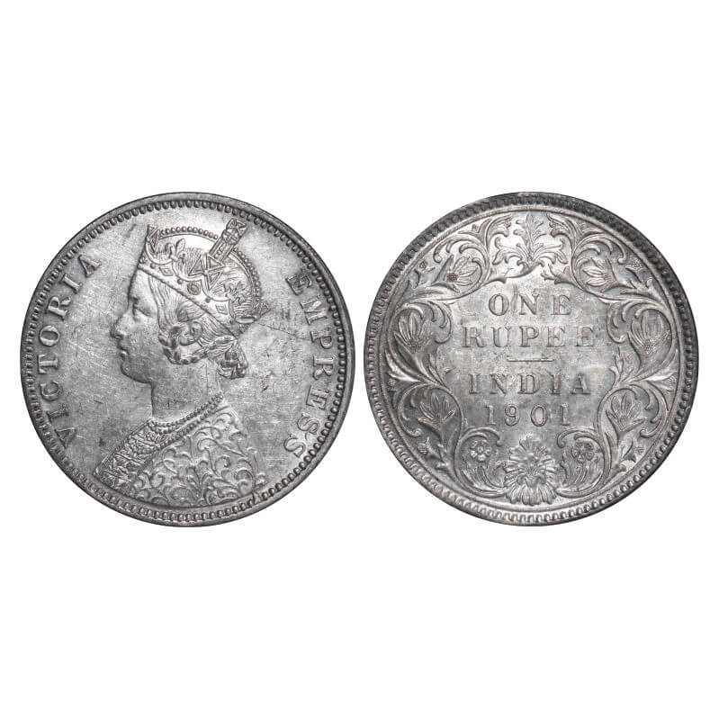 Victoria Empress, Silver, Rupee, 1901, Bombay Mint, A3(i)/I, 'B' incused. F. Prid 187. GK 592. Almost Uncirculated. Very Scarce.