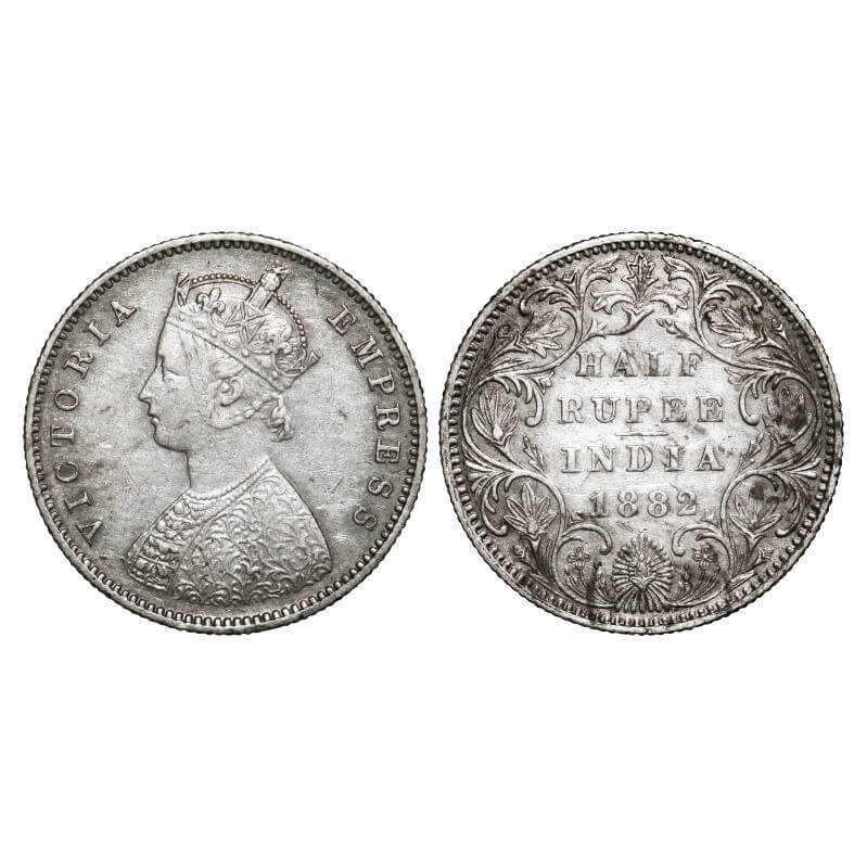 Victoria Empress, Silver, Half Rupee, 1882, Calcutta Mint, A/I, 'C' incused. F. Prid 266. GK 621. V...