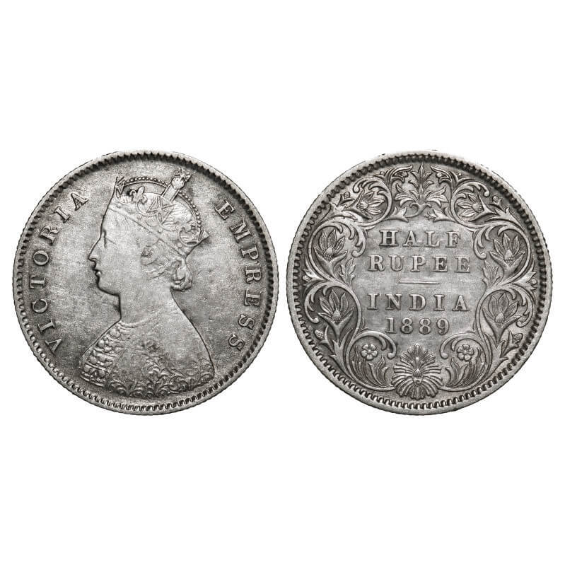 Victoria Empress, Silver, Half Rupee, 1889, Calcutta Mint, A/I, 'C' incused. F. Prid 273. GK 645. Very Fine+. Very Scarce.