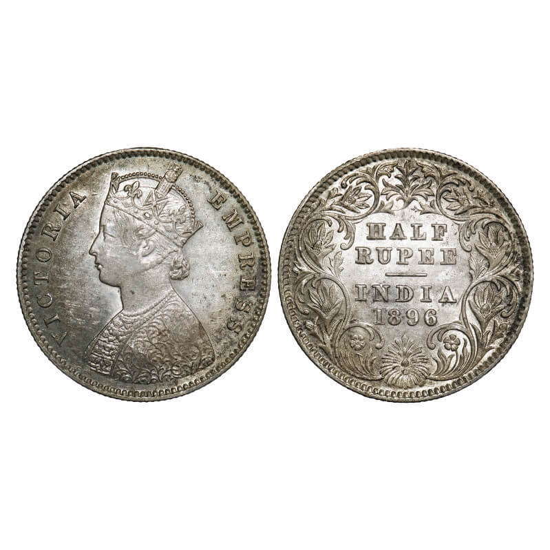 Victoria Empress, Silver, Half Rupee, 1896, Calcutta Mint, A/I, 'C' incused. F. Prid 279. GK 652. Extremely Fine+. Very Scarce.