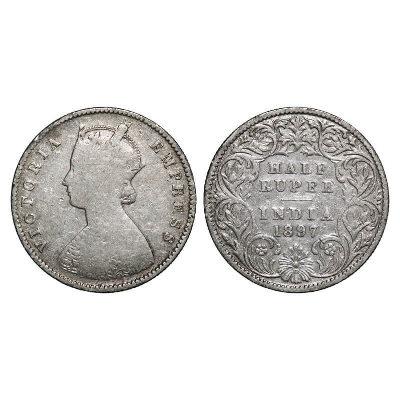 Victoria Empress, Silver, Half Rupee, 1897, Calcutta Mint, A/I, 'C' incused. F. Prid 280. GK 657. Fine. Scarce.