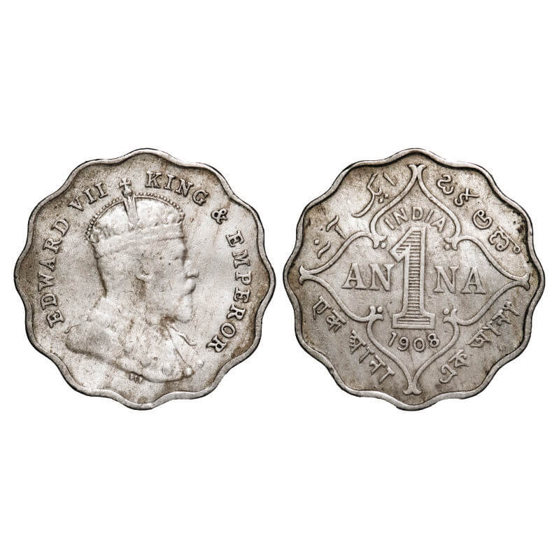 Edward VII, Copper-Nickel, 1 Anna, 1908, Bombay Mint, 'B' incused. F. Prid 927. GK 991. Very Fine+. Scarce.
