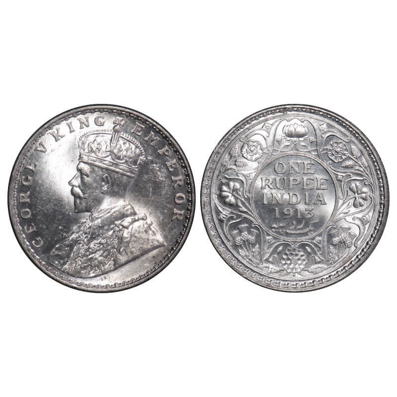 George V, Silver, Rupee, 1913, Bombay Mint, Dot. F. Prid 454. GK 1028. Mint State with original mint luster. Rare.