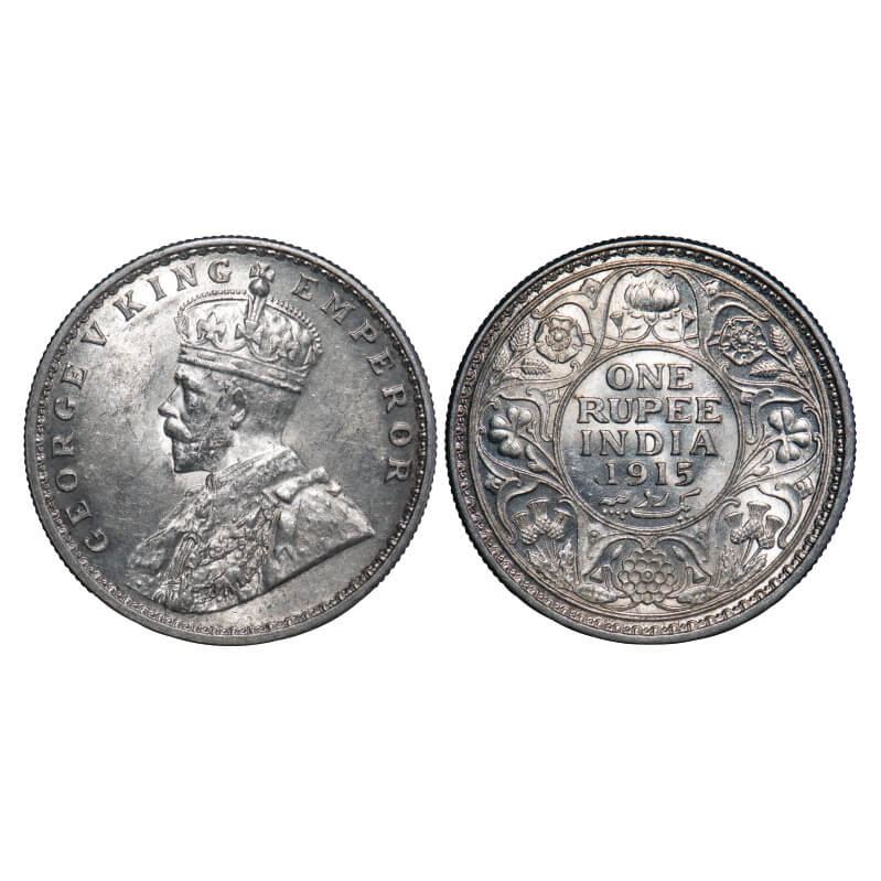 George V, Silver, Rupee, 1915, Calcutta Mint, No dot. F. Prid 211. GK 1031. Uncirculated. Very Scarce.