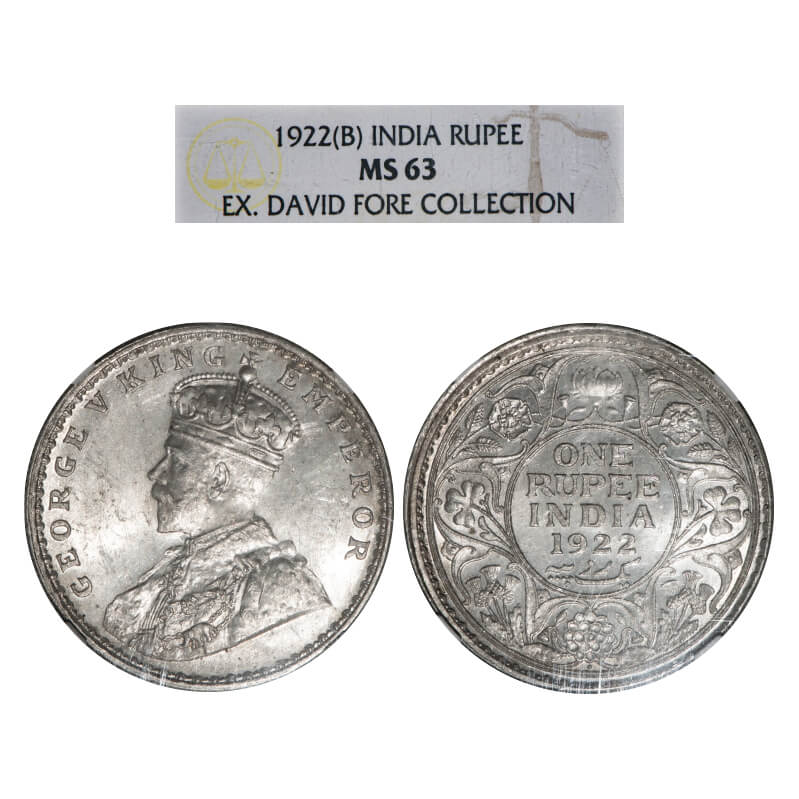George V, Silver, Rupee, 1922, Bombay Mint, Dot, Elephant. F. Prid 228. GK 1044. NGC Slabbed MS 63. Very Rare.