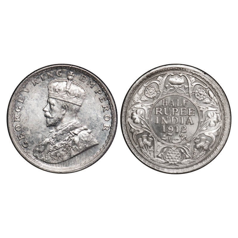 George V, Silver, Half Rupee, 1912, Bombay Mint, Dot, Re-Drawn Elephant. F. Prid 336. GK 1047. About Uncirculated. Very Scarce.