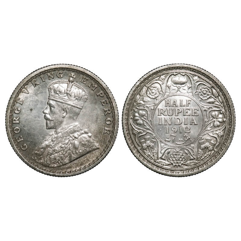 George V, Silver, Half Rupee, 1912, Bombay Mint, Dot, Re-Drawn Elephant. F. Prid 336. GK 1047. Almost Uncirculated. Rare.