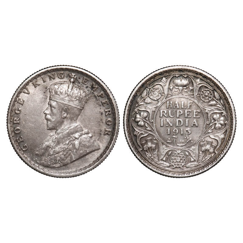 George V, Silver, Half Rupee, 1913, Calcutta Mint, No dot. F. Prid 320. GK 1048. Extremely Fine. Very Scarce.