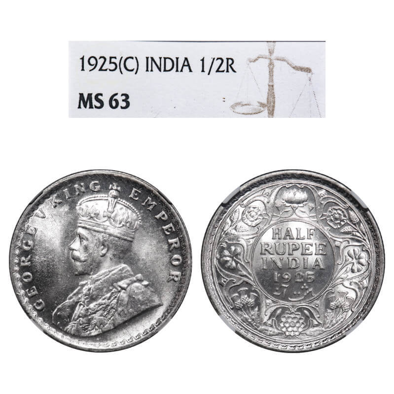 George V, Silver, Half Rupee, 1926, Calcutta Mint, No dot. F. Prid 329. GK 1067. NGC Slabbed MS 63. Very Rare.