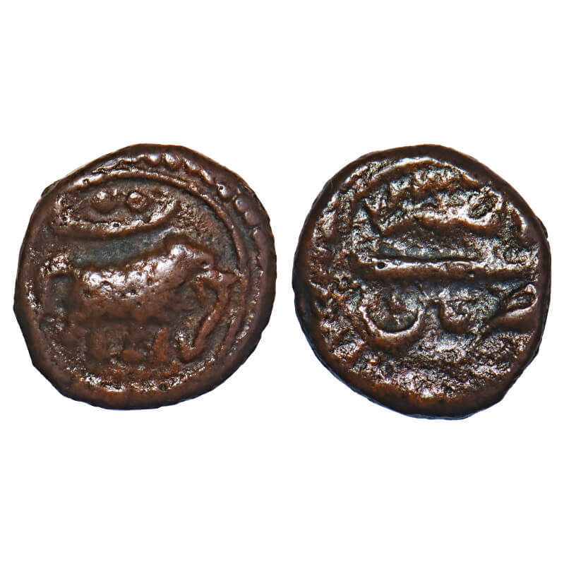 Mysore, Copper ¼ Paisa/Akhtar, 2.79g, Tipu Sultan, Patan Mint, AM 1224. Obv: Elephant towards right...